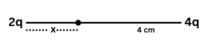 155. Two charges at placed 4cm apart as shown in figure ,at what point from 2Q charges, electric potential is zero?