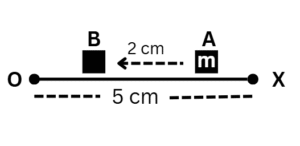 37. A mass shown in the figure is performing SHM between O (mean position) and X (extreme position). Suppose it is moving from point A to B. What is the displacement of mass at point B?